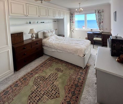 Apartment 27 is situated on the south-east corner of the second floor, occupying a prime position that offers spectacular views of Deal Castle, the pier and seafront from the majority of rooms. The property features two bedrooms, including a principal bedroom with an accessible en-suite shower room and built-in wardrobe space. There is also a separate bathroom along the inner hallway. The spectacular sitting/dining room boasts two large bay windows which flood the space with natural light and frame the truly stunning panoramic views of the seafront and castle. Adjacent to this is the well-designed kitchen, which provides an attractive continuation from the dining area and offers ample worktop and storage space as well as integrated fridge/freezer and cooking appliances.