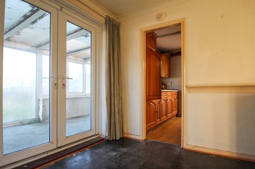 To the side of the property is a garage with a covered lean-to, featuring a quarry-tiled floor, leading to a utility area and providing access to a rear workshop. Although the property requires complete refurbishment and updating throughout, it benefits from a desirable setting, generous gardens, and lovely open views. The property is offered for sale with no onward chain, and early viewing is highly recommended.