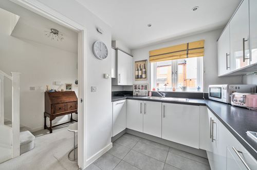 The ground floor comprises a welcoming entrance hall with a ground floor cloakroom/WC, leading through to a superbly fitted kitchen with a comprehensive range of contemporary units and benefits from integrated appliances, including a gas hob, eye-level oven, integrated dishwasher and washing machine. Extending across the rear of the property is a spacious sitting/dining room, providing an excellent living and entertaining space with direct access to the garden. Underfloor heating can be found throughout the ground floor.
