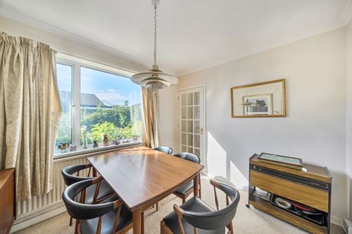 The accommodation has an entrance vestibule and wide and welcoming reception hall with double doors opening to a front sitting room with dual aspect, including patio doors and a feature gas fireplace. A separate connecting door opens to a rear dining room and onward to a modern well fitted kitchen with matching range of cupboard units, modern oven and induction hob and airing cupboard. From the hallway are three bedrooms of good size, each with fitted wardrobes and a modern bathroom suite with bath now replaced by a shower cubicle and a separate second cloakroom.