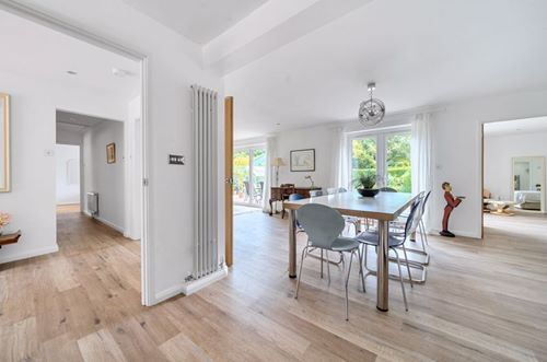 A beautifully reimagined modern detached bungalow combining the charm of its solid 60-year heritage with the style and comfort of a newly built home. Recently extended and refurbished to an exceptional standard, it has never been lived in since completion, meaning every fixture, fitting, and finish is pristine and ready for its first owner. The striking new rear wing houses a spacious principal bedroom suite with garden access, while the heart of the home is an impressive L-shaped open-plan living area. This sociable space seamlessly incorporates a sleek fitted kitchen, dining area, and sitting zone, with bi-fold and French doors opening directly onto the garden for an effortless indoor-outdoor lifestyle. With three generous double bedrooms in total, plus a separate utility room and an integral garage, the layout is as practical as it is stylish. Offered to the market with no onward chain, this is a rare opportunity to secure a home that is both contemporary and turnkey-ready.