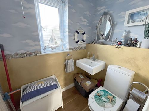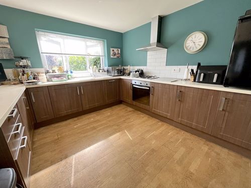 This deceptively spacious modern family home is set on a private, secluded corner plot close to the town centre. Entering via the side hallway with cloakroom, you're welcomed into a bright dual-aspect kitchen/dining room with shaker-style units and a full complement of integrated appliances. Double doors open to an enclosed lawned garden, perfect for outdoor living. At the rear, a generous sitting room offers a peaceful retreat featuring French doors to a second, more private garden space. To the first floor are three double bedrooms, including a principal with built-in wardrobes, all served by a stylish, light-filled bathroom with a three-piece suite and separate shower enclosure. Fully double glazed and gas centrally heated, this much loved family home offers comfort, privacy, and convenience.