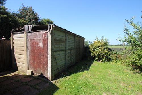 The extensive rear garden backs onto open fields, offering stunning, uninterrupted views. A paved patio spans the full width of the property, providing the perfect space for outdoor dining and entertaining. The remainder of the garden is neatly laid to lawn with well-maintained shrub borders. There are also several sheds, some of which may require removal or improvement.