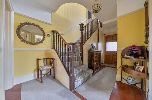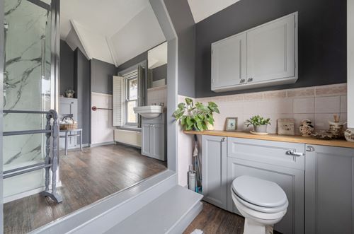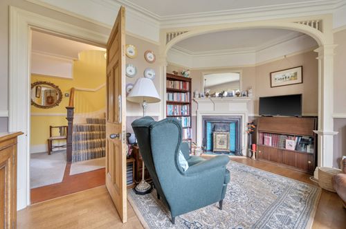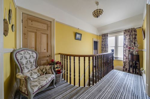 Upstairs, a generous galleried landing leads to three well-proportioned double bedrooms, all with built-in wardrobes, two of which enjoy particularly fine views. The luxurious family shower room has been beautifully updated in keeping with the period of the property, creating a superb blend of old and new.