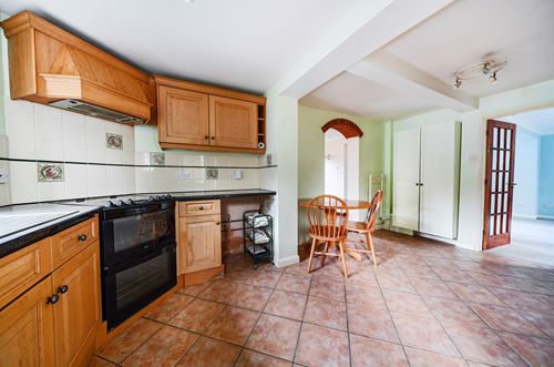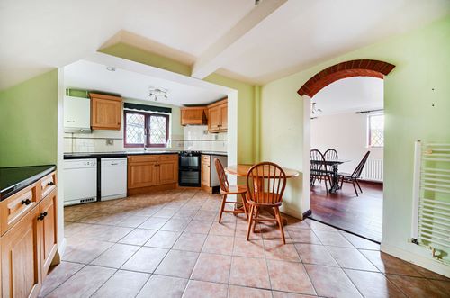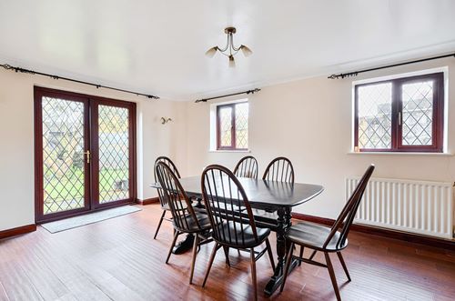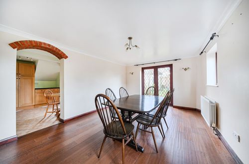 This attractive detached village house occupies a corner plot in a highly sought-after location in Lyminge. A neat pathway leads to the front door, opening into a welcoming entrance hall. The sitting room features a multi-fuel stove that provides a cosy and inviting space for family life. There is a large, fitted kitchen/breakfast room includes a freestanding cooker with induction hob, dishwasher, tumble dryer, and plumbing/space for a washing machine and fridge freezer, allowing ample space for a breakfast table. Off the kitchen, a spacious dining room with French doors to the garden offers flexibility as a family room or formal dining space. Completing the ground floor is a cloakroom/wc. Upstairs, four bedrooms include a double aspect master bedroom with en-suite shower room while the second bedroom has a good range of wardrobes, two further bedrooms and a family bathroom with shower over complete the first-floor accommodation. Old Forge has recently had some rooms redecorated along with new carpets creating an interior that is light, airy, and ready to move into.