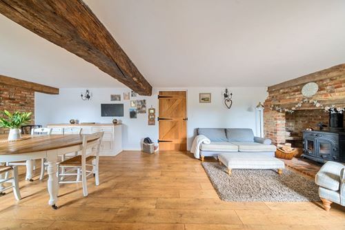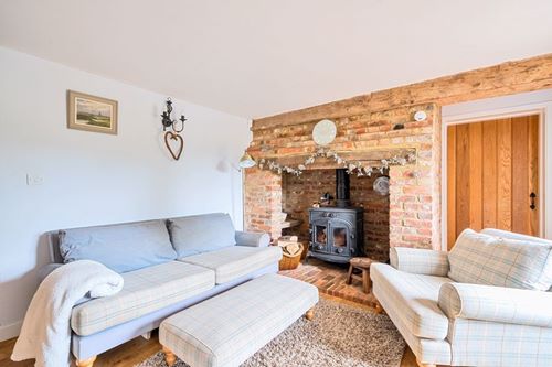 Wents Cottage blends period character with modern comfort, featuring exposed beams, an inglenook fireplace with log burner, exposed brickwork, engineered wood flooring, period style doors, oil fired central heating, and double glazed windows and doors throughout.