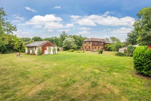 Several outbuildings complement the main house, including a detached one-bedroom guest annex, a timber store, a workshop, and a large detached outbuilding with power and lighting. There is also gated vehicular access via the adjoining bridleway, providing flexibility and convenience.
